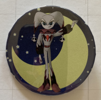 Hand-made, 2 and 1/4 inch button-style pin featuring Halloween NiGHTS, in front of a harvest moon.